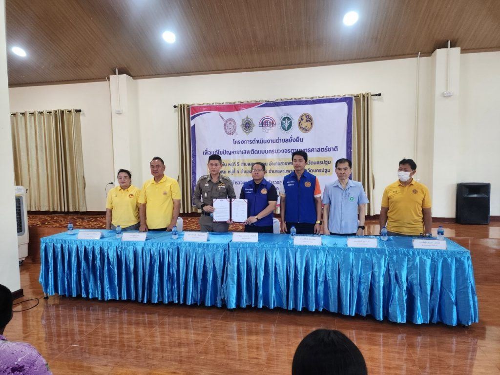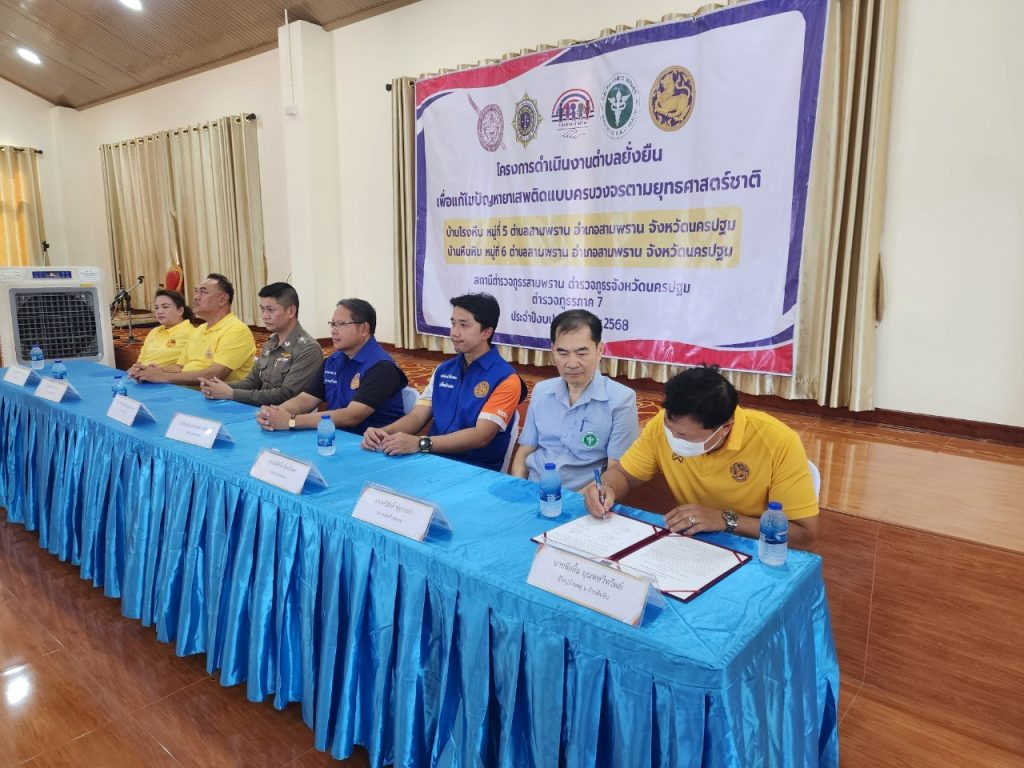 สภ.สามพราน ร่วมพิธีเปิดโครงการชุมชนบำบัดอย่างยั่งยืนในพื้นที่แพร่ระบาดยาเสพติด ตามนโยบายเร่งด่วนของรัฐบาล โดยมี ว่าที่ร้อยโทอรรถชล ทรัพย์ทวี นายอำเภอสามพราน ร่วมเป็นประธานในพิธี