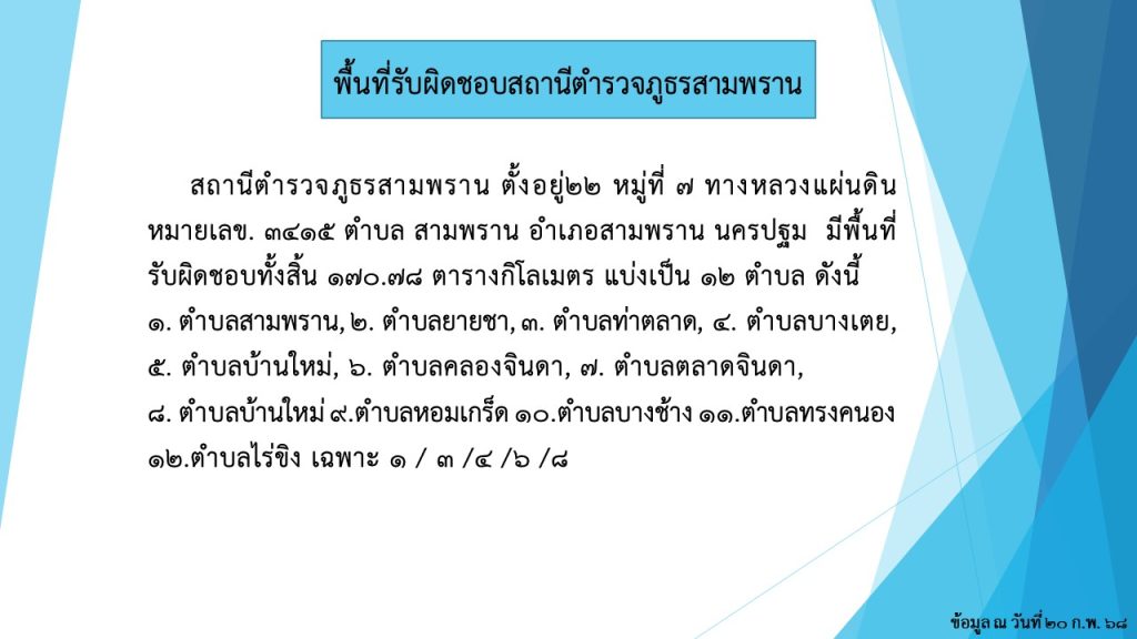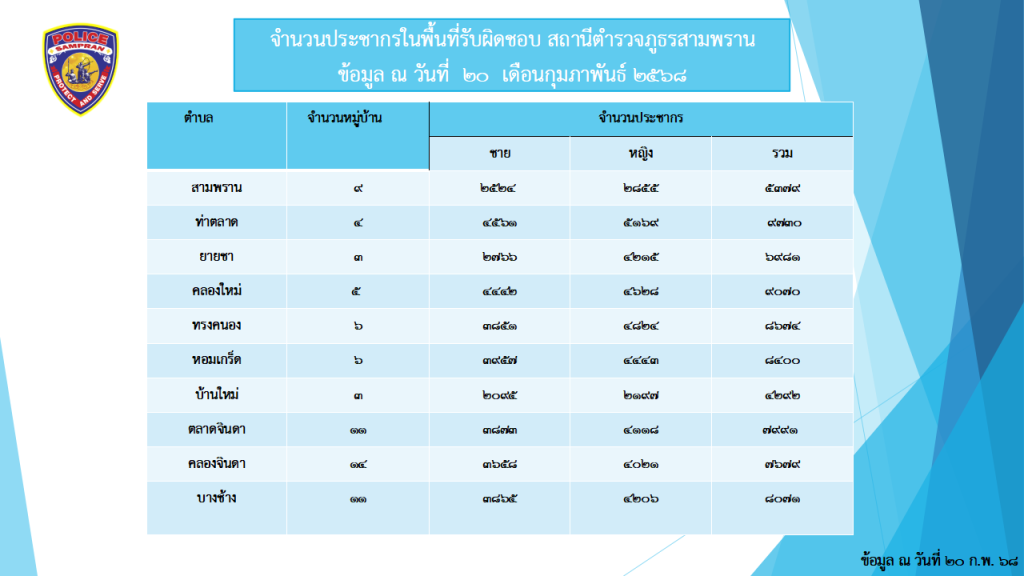 จำนวนประชากรในพื้นที่เขตรับผิดชอบ สถานีตำรวจภูธรสามพราน