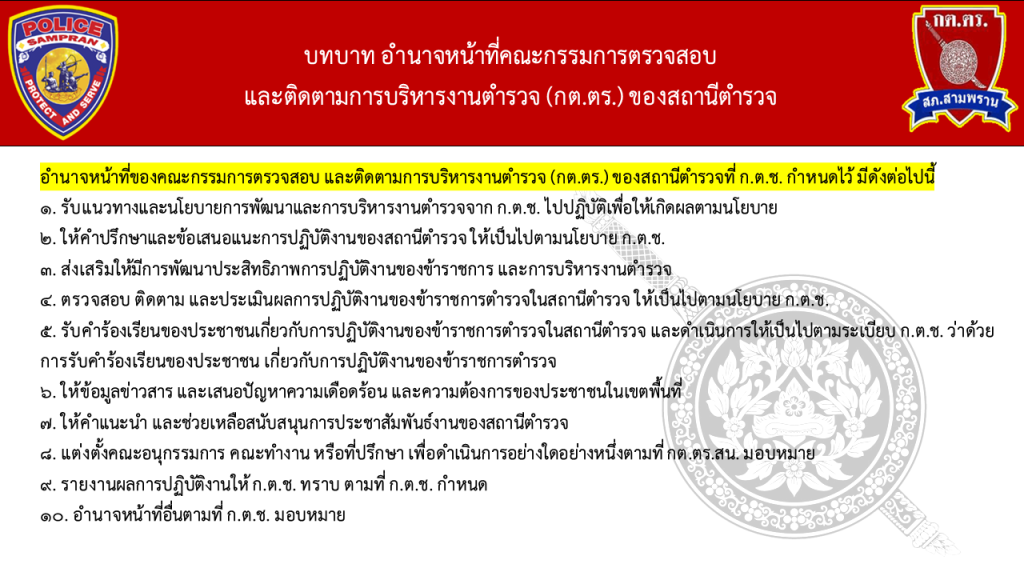 บทบาท อำนาจหน้าที่คณะกรรมการตรวจสอบและติดตามการบริหารงานตำรวจ (กต.ตร.) ของสถานีตำรวจ