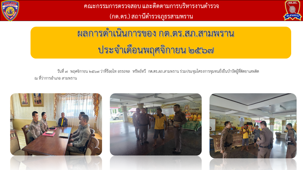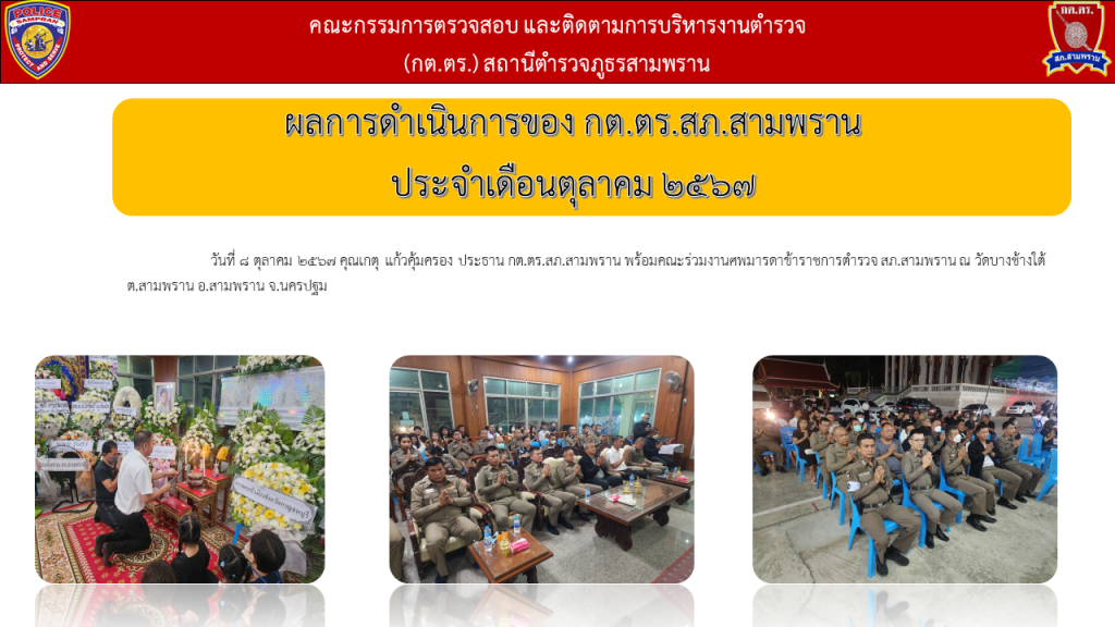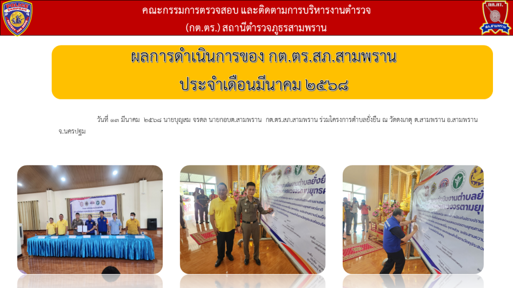 ผลการดำเนินงานของ กต.ตร.สภ.สามพราน ที่ผ่านมารอบ 6 เดือนแรก ปีงบประมาณ พ.ศ. 2568